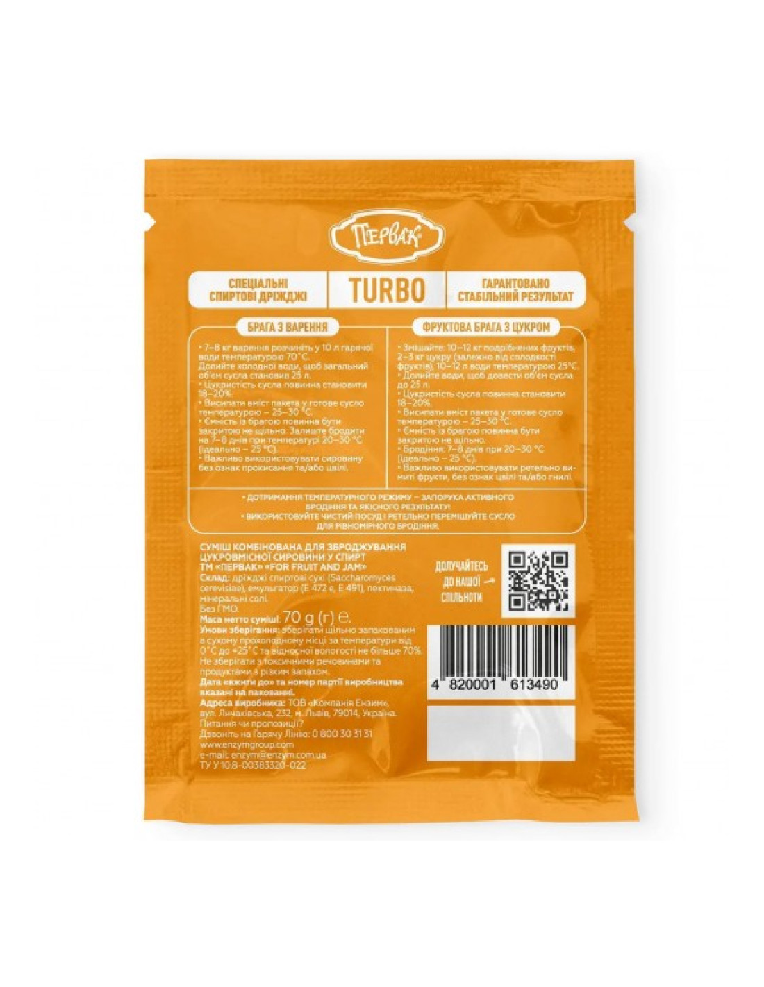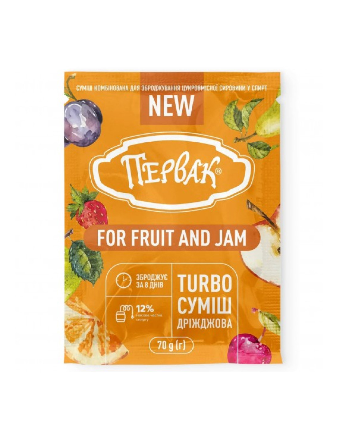 Первак Turbo For Fruit and Jam — спеціалізовані турбо-дріжджі, розроблені для зброджування фруктів, ягід та варення.